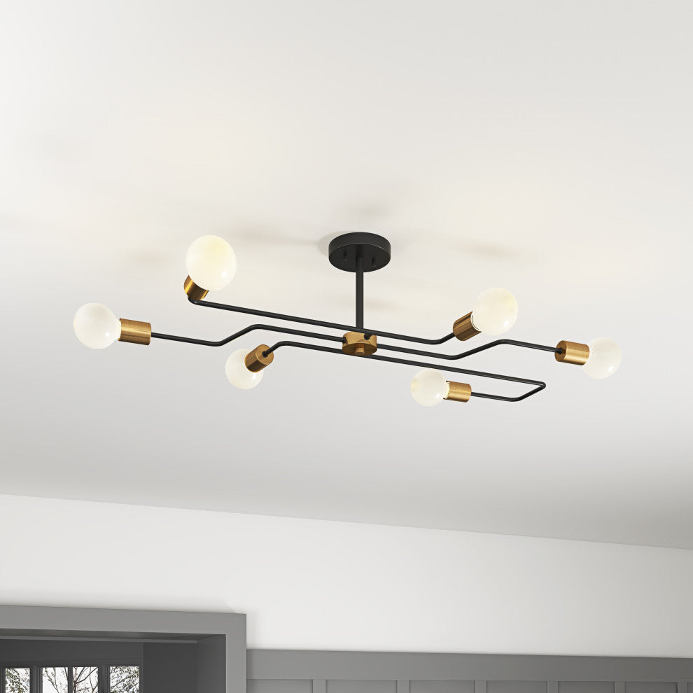 Modern 6-Light Sputnik Semi Flush Mount Ceiling Light Fixture for Dining Room