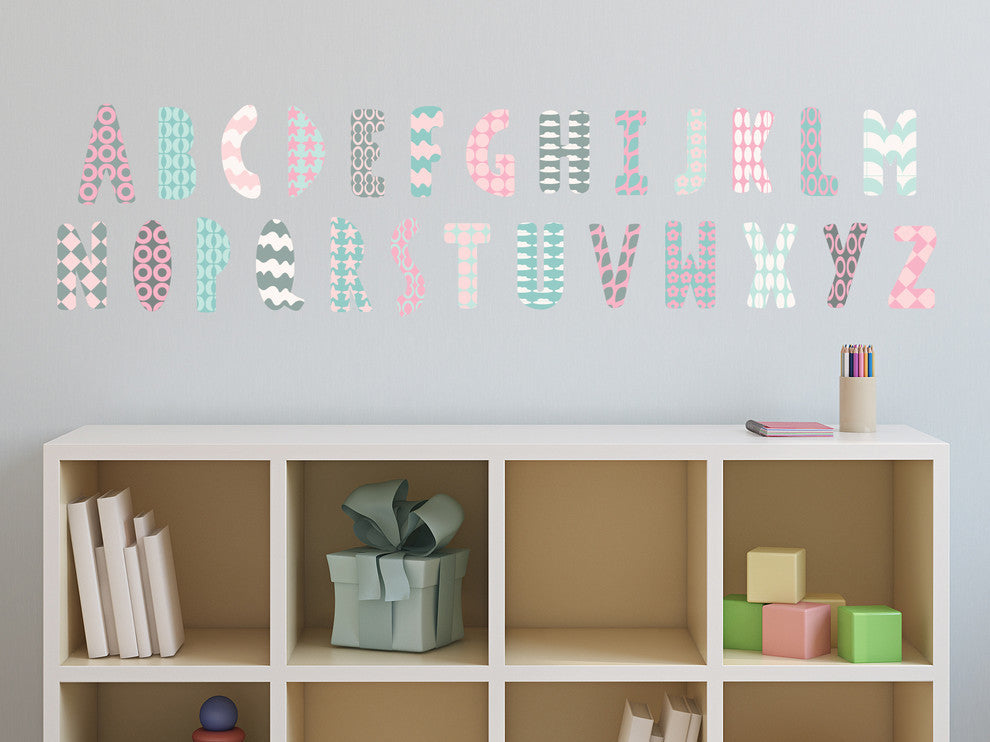 These beautiful modern looking alphabet wall decals are made from a high quality fabric material that is reusable and repositionable. These alphabet wall decals are adorned with beautiful patterns and are available in four different color options: