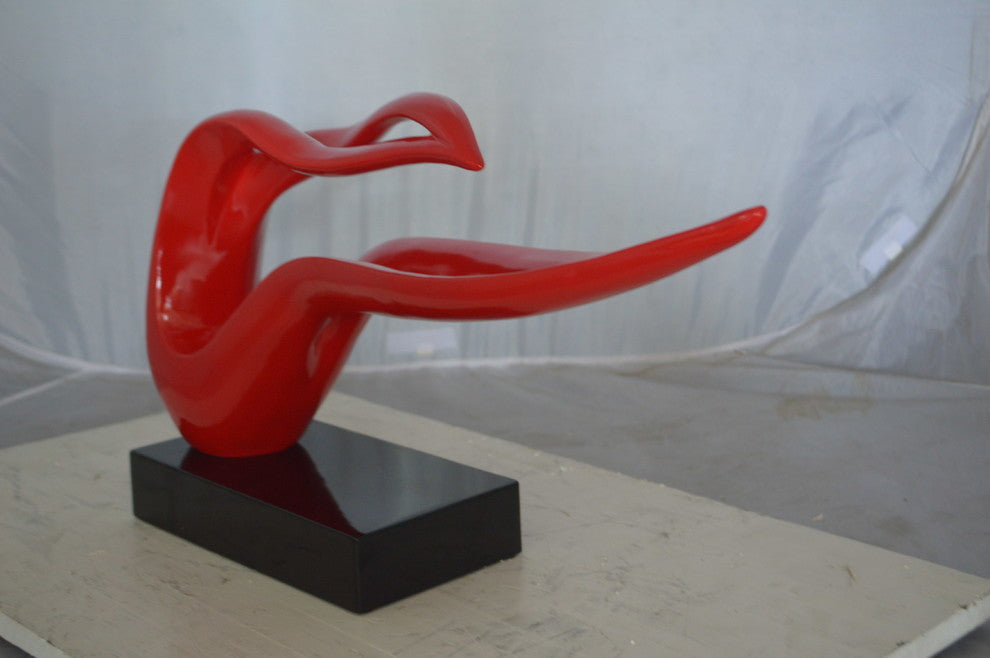 Enjoy this happy looking modern art, resin statue of a Red Ribbon flying in the wind. This modern abstract would be a great addition to your home. Resin casting is a method of plastic casting where a mold is filled with a liquid synthetic resin, which then hardens. Size: 25"L x 6"W x 13"H. Weight is: 8Lb