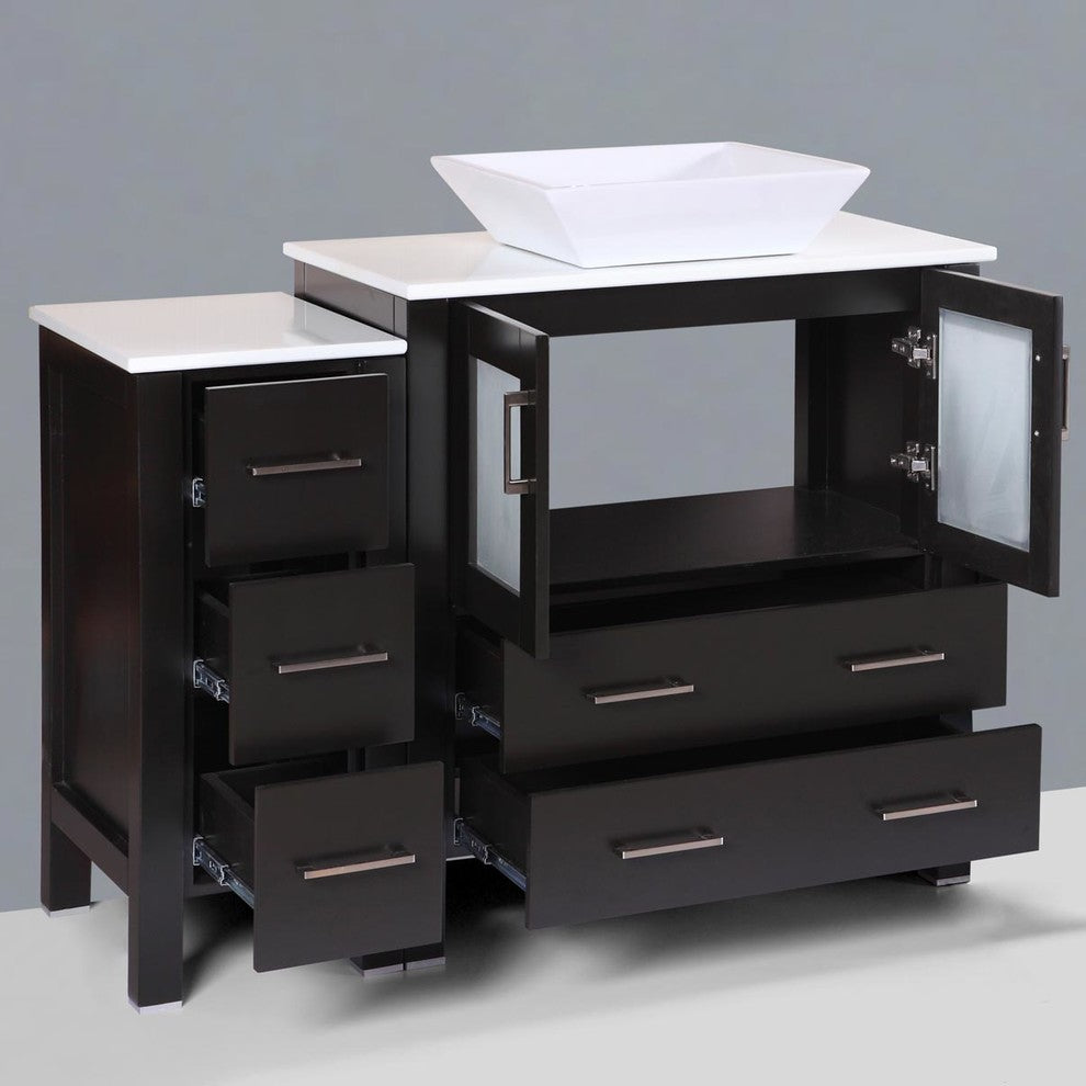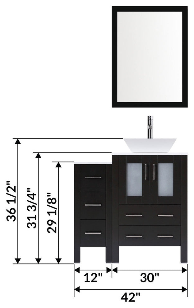 Modern Bathroom Vanity Set With Mirror and Sink, Espresso, 42"