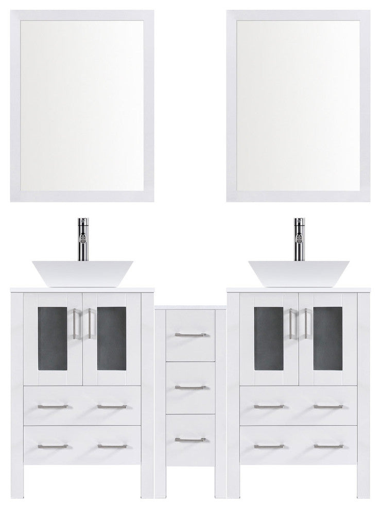 Modern Bathroom Vanity Set With Mirror and Sink, White, 72"