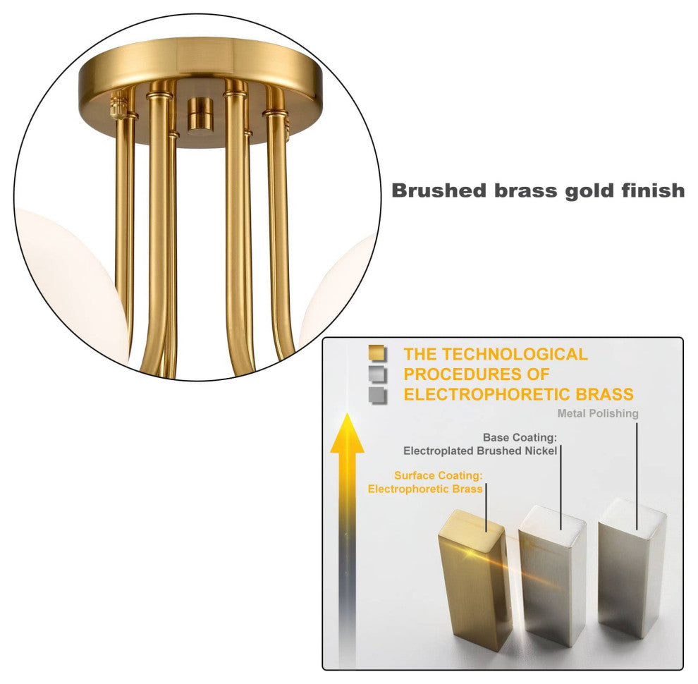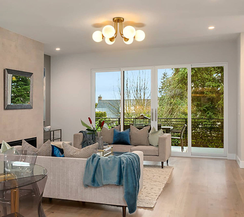 Modern Brass Globe Ceiling Light 6-Light With Opal Glass