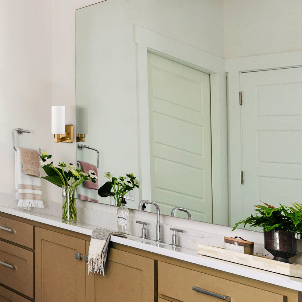 Modern: This plug in wall sconce is made of sturdy metal in brass finish and frosted milky white glass shade- the wall sconce adds an modern and elegant touch to your home.