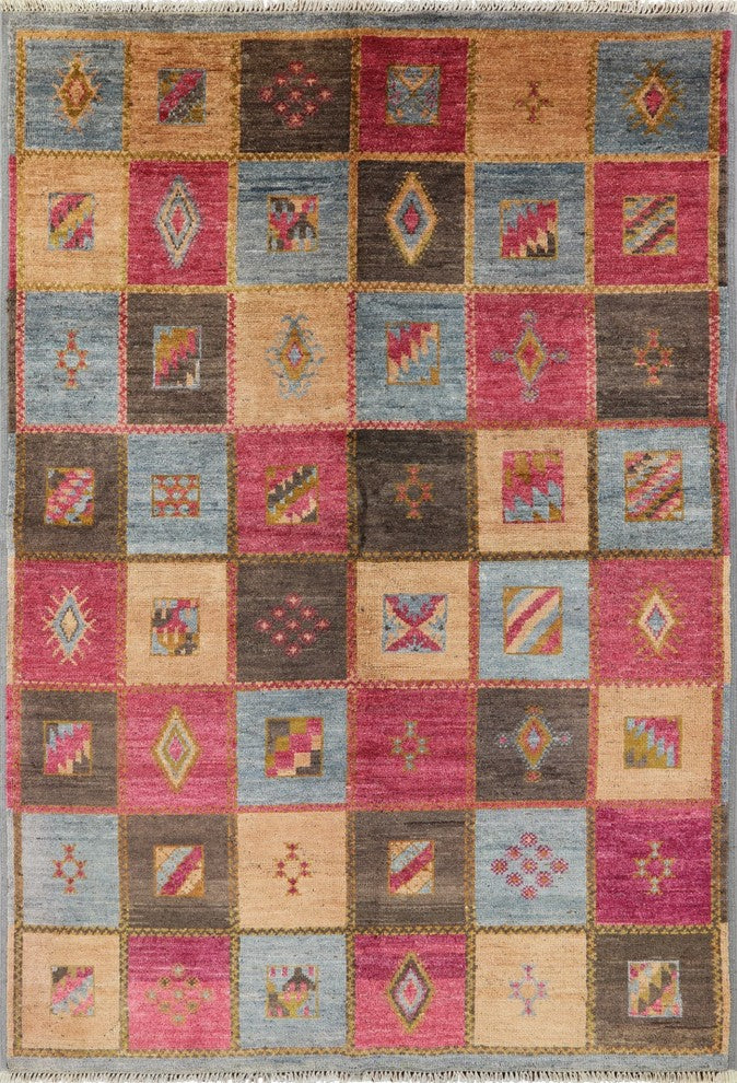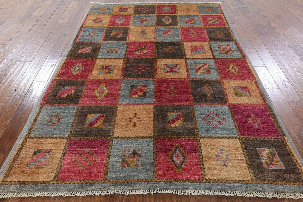 Modern Collection 6'x9' Multicolor Hand Knotted Wool Geometric Area Rug H8792