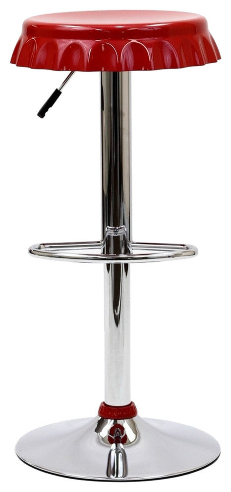 The Soda Bottle Bar Stool is sure to draw praise. What a delight to sit on such a fun piece of furniture. Add an air of levity to any room with the Soda Bottle Bar Stool.Fiberglass Seat, Chromed Base and Frame360 Degree SwivelOverall Product Dimensions: 15"L x 15"W x 23.5 - 31.5"HSeat Height: 24 - 32"H