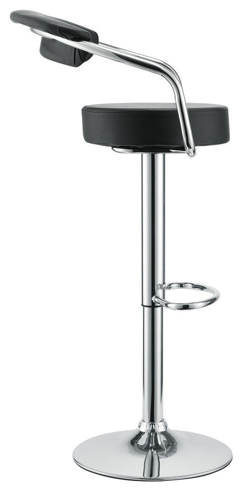 The 1950''s Diner Bar Stool is a great choice for folks who want supreme comfort in a Bar Stool. Thick cushion greet the user like an old friend, and upholstered back rest invites you to lean back and relax. The base and pole''s shiny chrome finish, give it a delightful retro feel; have the best of yesterday today.Steel Frame, 3.5" Inch Cushion360 degree Swivel, Adjustable HeightOverall Product Dimensions: 18"L x 21"W x 34 - 42.5"HSeat Height: 24.5 - 33"HArmrest Height: 29.5 - 37.5"H