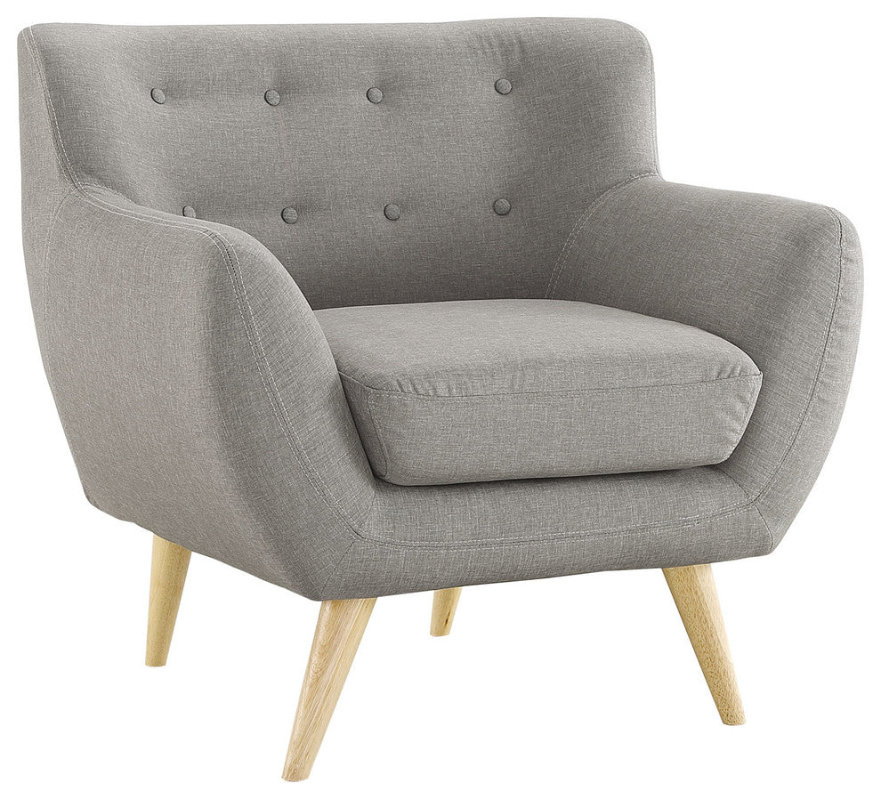 Take notice and engage your sensibilities with this plush dual cushion, organically shaped Living Room Set. Remark is gracefully positioned on solid natural wood dowel legs designed according to mid-century sentiments. Whether settling in with coffee and brunch, or entering a spirited discussion with friends, Remark?s polyester upholstery, two rows of finely stitched back seat buttons, and organic form ensure an eye-catching appeal at every turn. Bring depth and modernity to your contemporary living room or lounge area with the Remark mid-century modern style Living Room Set.Set Includes:One - Remark ArmchairOne - Remark LoveseatMid-century modern style Living Room SetNatural color rubber wood legsNon-marking foot caps100% polyester materialOverall Product Dimensions: 32.5"L x 96"W x 32.5"HOverall Armchair Dimensions: 32"L x 34.5"W x 32"HSeat Dimensions: 21"L x 20 - 21"W x 18.5"HBackrest Dimensions: 5 - 9"L x 20 - 34.5"W x 13.5"HArmrest Height: 24.5"HOverall Loveseat Dimensions: 32"L x 61.5"W x 32"HSeat Dimensions: 21"L x 21 - 23"W x 18.5"HBackrest Dimensions: 21"L x 21"W x 13.5"HArmrest Height: 24.5"HArmrest Height from Seat: 8"H