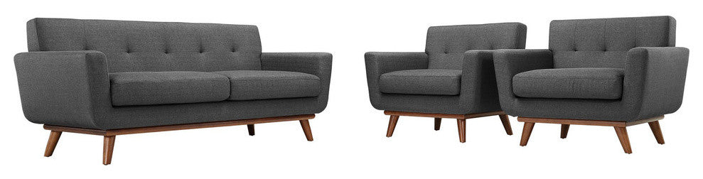 Modern Contemporary Living Room Armchairs and Loveseat Sofa 3-Piece Set Gray