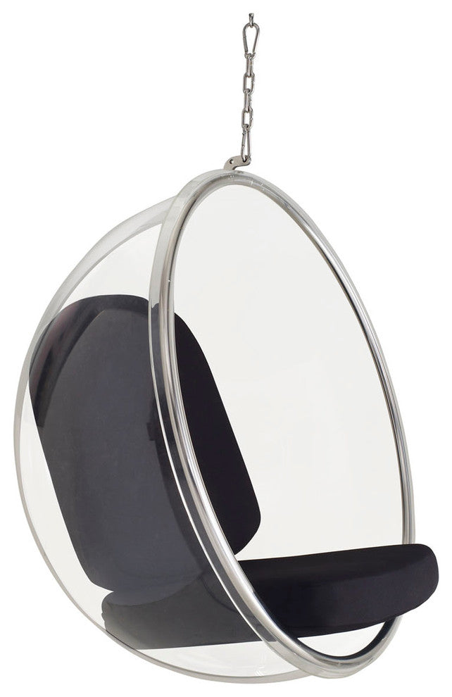 Gladden the everyday with the transparent Ring Chair. Your experience of space will never be the same as you let brilliant reality shine in all directions. Gently unite the prism of light and life as you sit elevated amongst a plane of renewal and rejoicing.Clear Acrylic, Steel RimVinyl Cushion, Weight Capacity: 300lbs8 ft. Ceiling Chain Included, Stand Not IncludedOverall Product Dimensions: 41.5"L x 31.5"W x 43"H