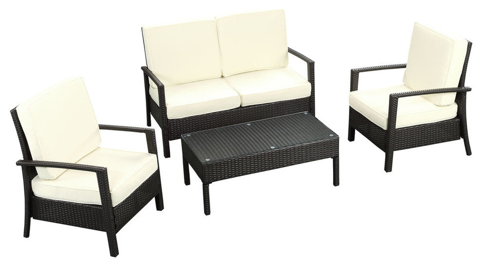 Modern Contemporary Outdoor Patio Rattan and Wicker 4-Piece SetSofa Set White