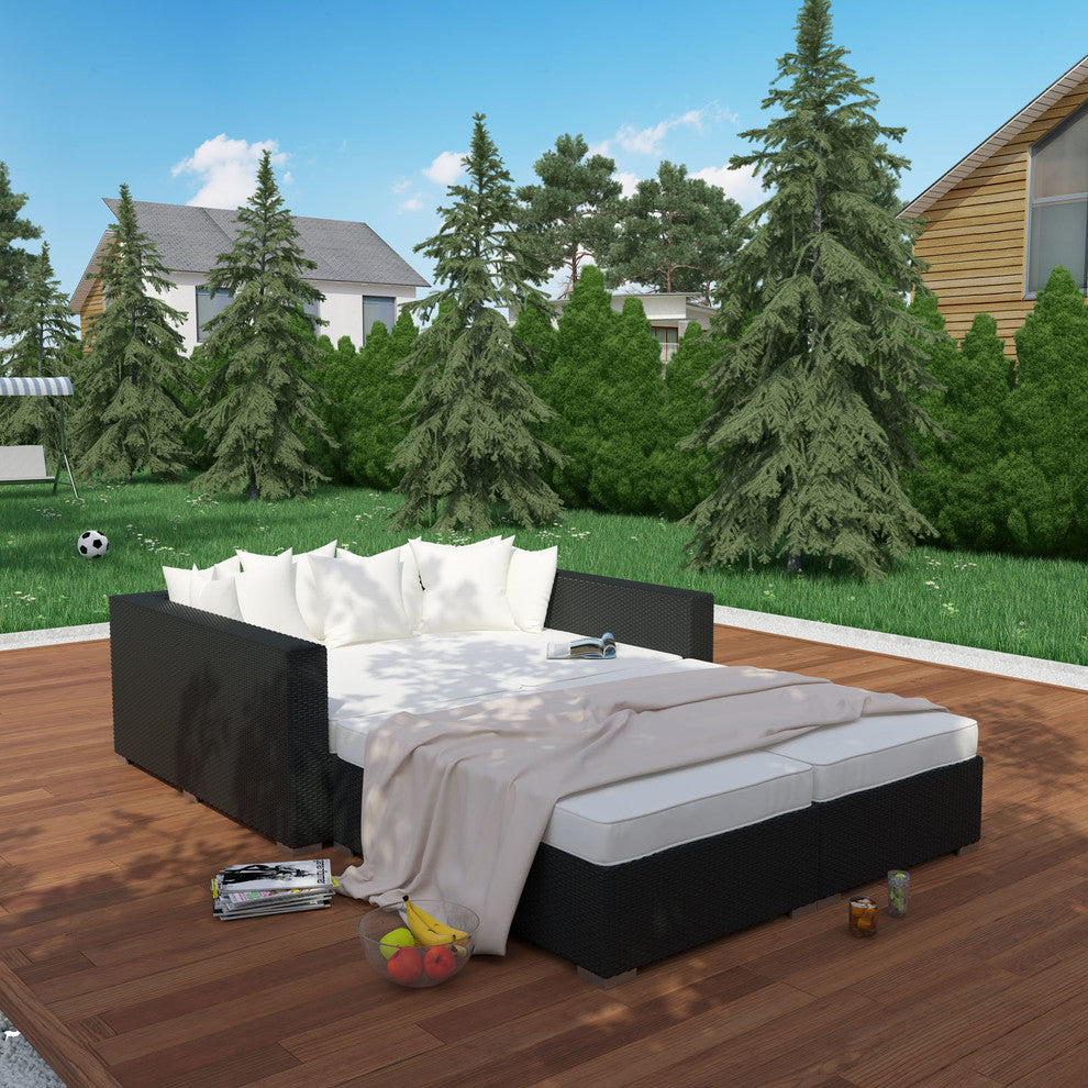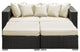 Rejoice in the splendor of a completely formed outdoor bedding environment. View from afar as you silently take in the sights and sounds around you for proper effect. Make your initial movements toward transformation with this splendid flowing piece of absolution and resolve.Synthetic Rattan Weave, Powder Coated Aluminum FrameWater & UV Resistant, Machine Washable Cushion CoversShips Pre-AssembledOverall Product Dimensions: 104"L x 70"W x 25"HLeft Side Chaise Dimensions: 55"L x 35"W x 25"HRight Side Chaise Dimensions: 55"L x 35"W x 25"HOttoman Dimensions: 49"L x 30"W x 12"HPillow Dimensions: 18"L x 18"W x 4"HArmrest Dimensions: 6"W x 25"HCushion Thickness: 4"HSeat Height: 12"H