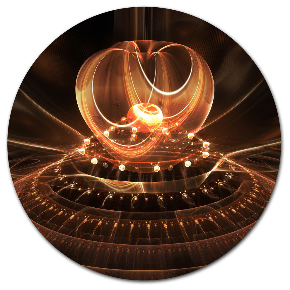 Modern Fractal Brown Dom, Abstract Round Metal Wall Art, 23"