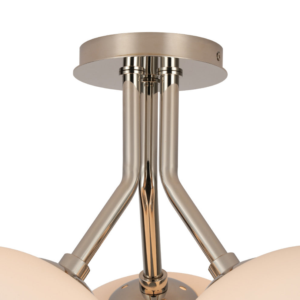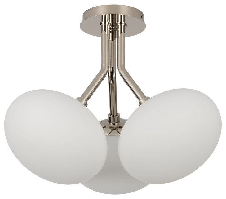 Modern Mid-Century 3-Light Elliptical Sputnik Glass Semi Ceiling Light, Nickel