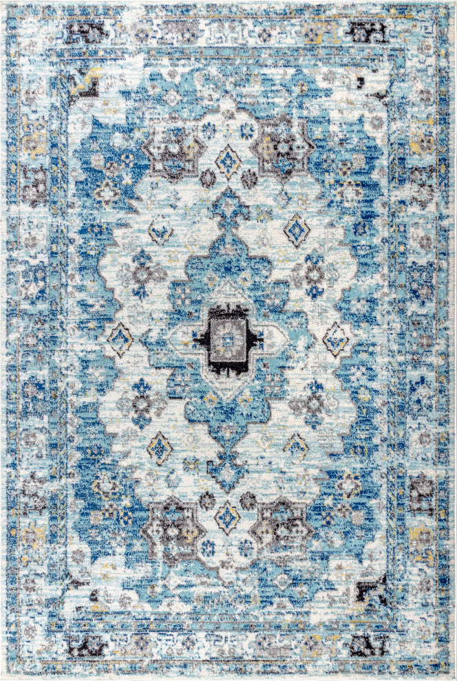 You''d never know its durability from looking at this Modern Persian style, but it''s a classic that is built to stand the test of time. While it looks like an heirloom antique, it is made of modern materials woven on a power loom, and is perfect for homes with kids, pets, or high traffic. The lovely shades of turquoise and aqua bring new life to this traditional pattern. Features:• With a plush pile cut at 0.31", it can stand up to high traffic without looking matted or worn• Power loomed of 100% polypropylene, our artisans in Turkey take great pride in the quality of their floor coverings, ensuring it to last for years to come• 100% Polypropylene• No backing, use of rug pad is recommended (sold separately)• Power Loomed in Turkey• Thickness measures: 0.31 in.• Available in multiple sizes and/or colorsRug Care:• Vacuum regularly and spot clean as needed; avoid direct and continuous exposure to sunlight; use brushless vacuum; remove spills immediately; if liquid, blot with clean, undyed cloth by pressing firmly around the spill to absorb as much as possible; for hard to remove stains, professional rug cleaning is recommended; store in a dry, well ventilated area and rotate for consistent wear• Packing and shipping may cause temporary creases in rugs, which will flatten out after a week on the floor; to expedite the process, try back-rolling your rug before laying it down, and then allow ample time for the remaining creases to relax• Please Note: Due to differences in monitors, some rug colors may vary slightly. Lengths and widths may vary from the published dimensions. Patterns may vary slightly according to shape and size selected.About us:Style your floors with JONATHAN Y. By combining fine craftsmanship and design, this New York creative studio is bringing fashion to your floors. The collection mixes sustainable organic materials, vibrant colors and trend worthy styles to create JONATHAN Y''s distinctive catalog of rugs.