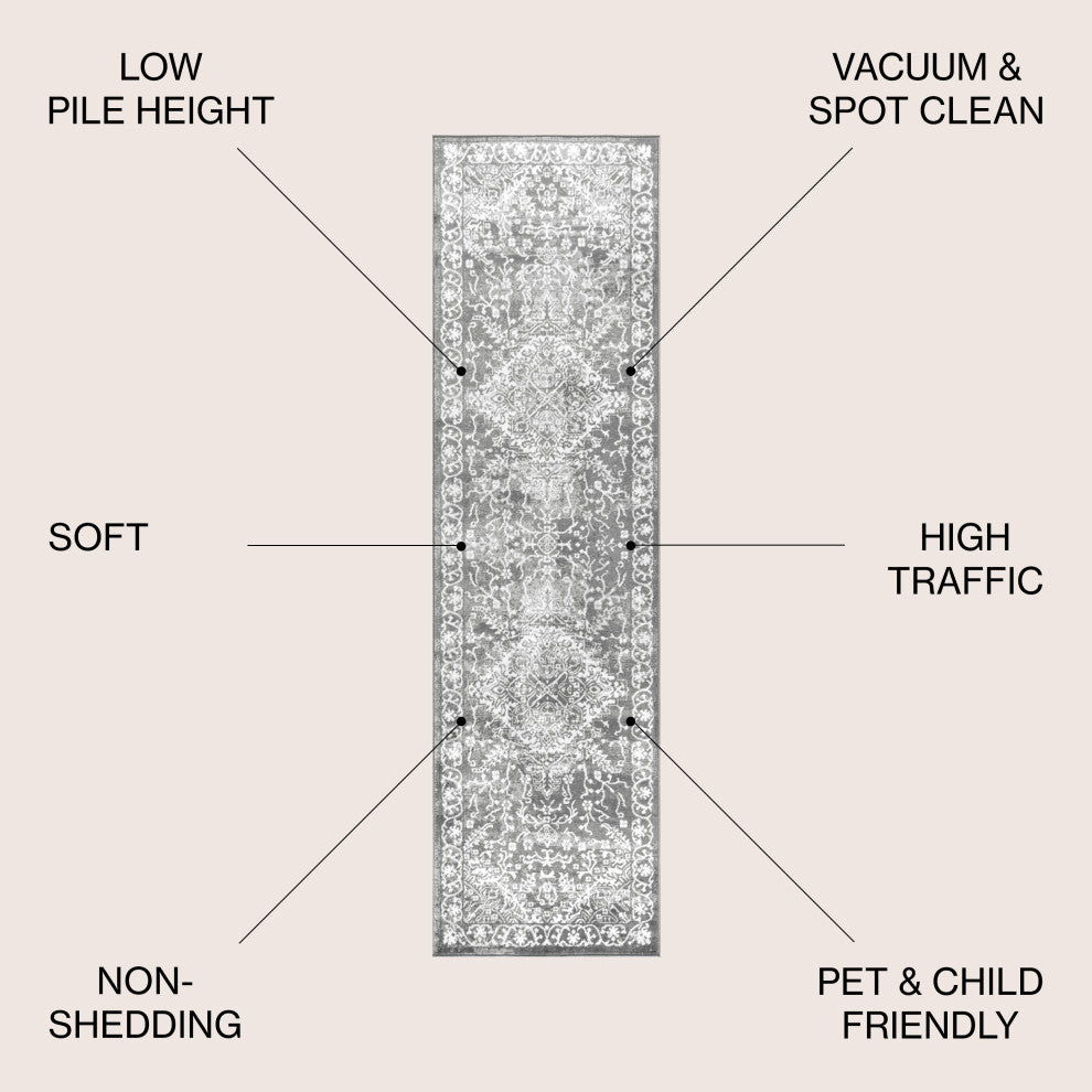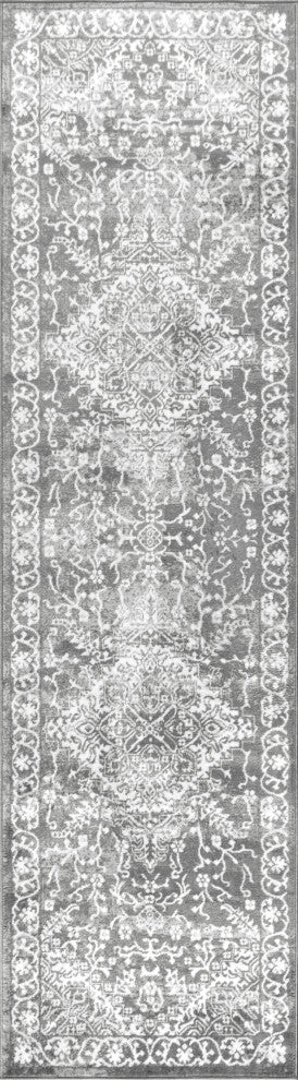 Modern Persian Vintage Medallion Area Rug, Gray, 2 X 14