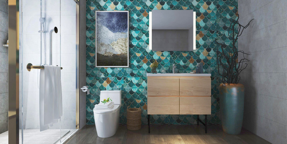 Modern Style Oak Wood Finish Elvora Single Sink Bathroom Vanity, 40"