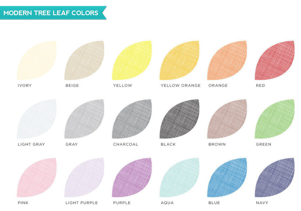 This modern tree fabric wall decal is available in 18 different color options. The trunk and branches of the tree have a wood grained design and the leaves cone with a pattern. The decals are made from a fabric material that is non-toxic and extremely easy to apply. Just peel and stick anywhere. They are repositionable and can be removed without leaving any sticky residue. Tree with individual leaves that can be positioned any way you like Product Dimensions: (width x height) 36" wide x 72" tall Available in 18 color options: 1) Beige 2) Gray 3) Black 4) Blue 5) Brown 6) Light Gray 7) Yellow/Orange 8) Green 9) Charcoal 10) Ivory 11) Navy Blue 12) Orange 13) Pink 14) Purple 15) Red 16) Aqua 17) Yellow 18) Light Purple STILL NOT CONVINCED WHY FABRIC WALL DECALS ARE SUPERIOR TO VINYL? The material for our fabric wall decals is many times more expensive than vinyl but it''s worth the extra cost. It''s made of natural fibers and a water based adhesive so it won''t damage your walls and can be repositioned many times. It''s extremely easy to install because it doesn''t come in a complicated puzzle and you don''t need any tools or diagrams. It won''t shrink or curl like vinyl and the matte finish looks like a mural has been painted on your walls. We have the most competitively priced fabric wall decals that you can find online. Our quality is unmatched and we hope that you love our designs as much as we do!High quality fabric material with a water based adhesive, this is not cheap vinyl like most of the decals you find onlineProudly made in the USA - Non-toxic, Phthalates free, BPA free, PVC freeReusable, repositionable, material will not shrink, stretch, or curl. Our fabric decals will work on most surfaces including textured wallsEasy to apply with no special tools or transfer paper required. Can be pulled apart if it folds over during installation.