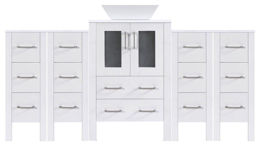 Modern Vanity Set With One Sink Base With Mirror and Four Drawer Bases, White, 7