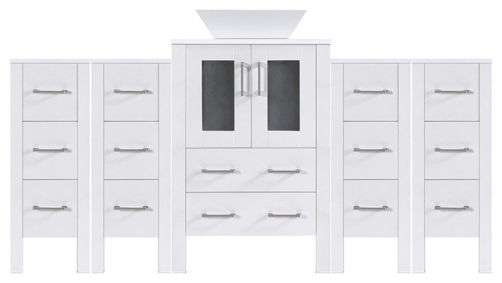 Modern Vanity Set With One Sink Base With Mirror and Four Drawer Bases, White, 7