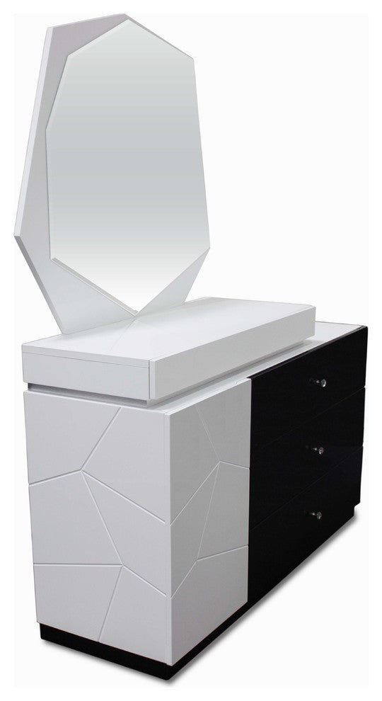Modern White and Black Dresser and Mirror, 2-Piece Set