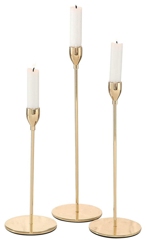 Modernist Tulip Top 3 Piece Gold Taper Candle Holder Set