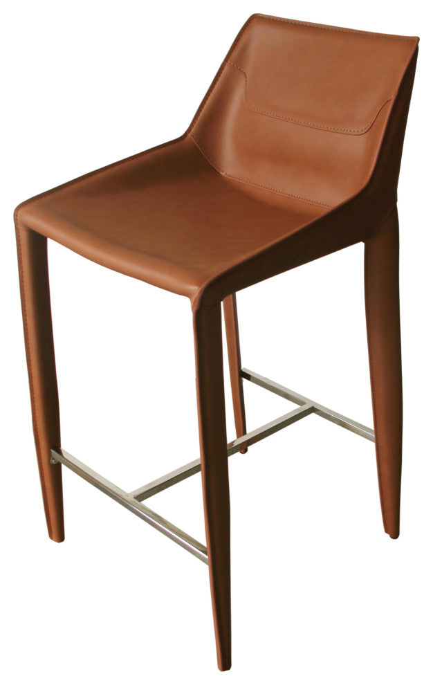 Modrest Halo Modern Cognac Saddle Leather Counter Stool