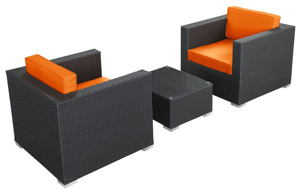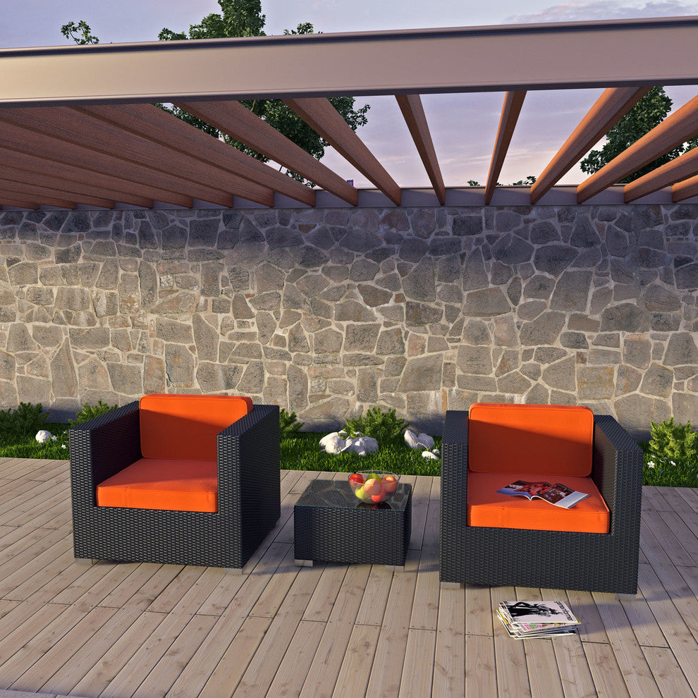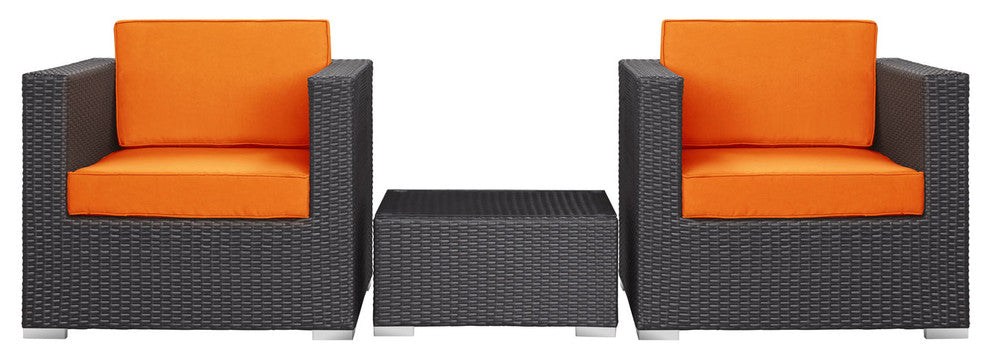 Modway Burrow 3-Piece outdoor Patio Sofa Set, Espresso/Orange
