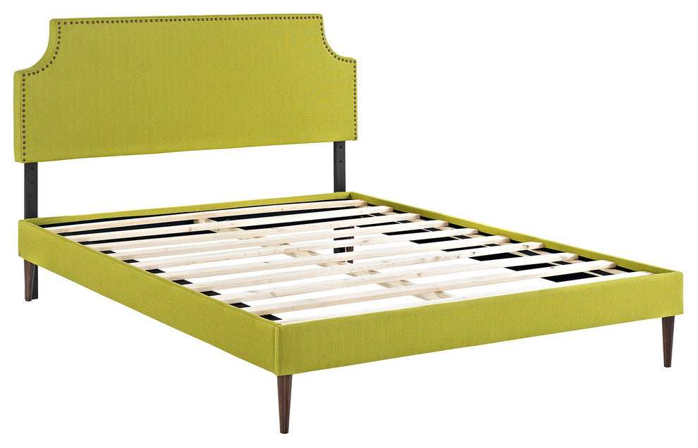 Modway Laura Queen Fabric Platform Bed With Round Tapered Legs, Wheatgrass