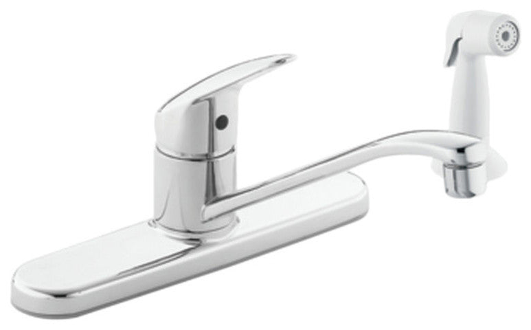 The Cornerstone series features a uniquely classic look with sleek curves and minimalistic qualities that are sure to compliment any home.Features:Ceramic Disc CartridgeLever Handle4 Hole ApplicationSide Spray: White Finish1/2" IPS connections