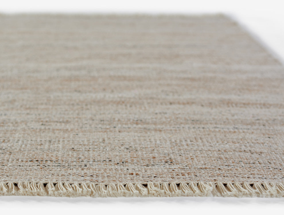 This natural toned rug from the Cove collection brings you minimalistic style for both the interior of your home as well as your outdoor lounging area, making it quite versatile, and completely move-in ready for your indoor/outdoor California-dreaming lifestyle. A heathered-like appearance is formed thanks to the hand-woven nature of the rug, being composed of 100% PET fibers-perfect to withstand the elements and anything guests, children and pets can throw at it.