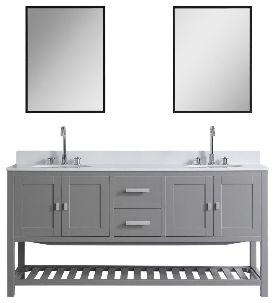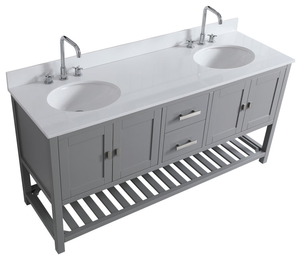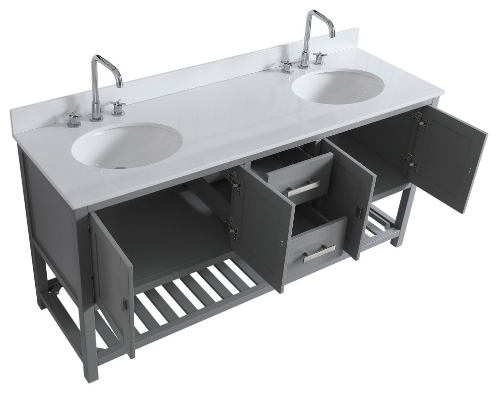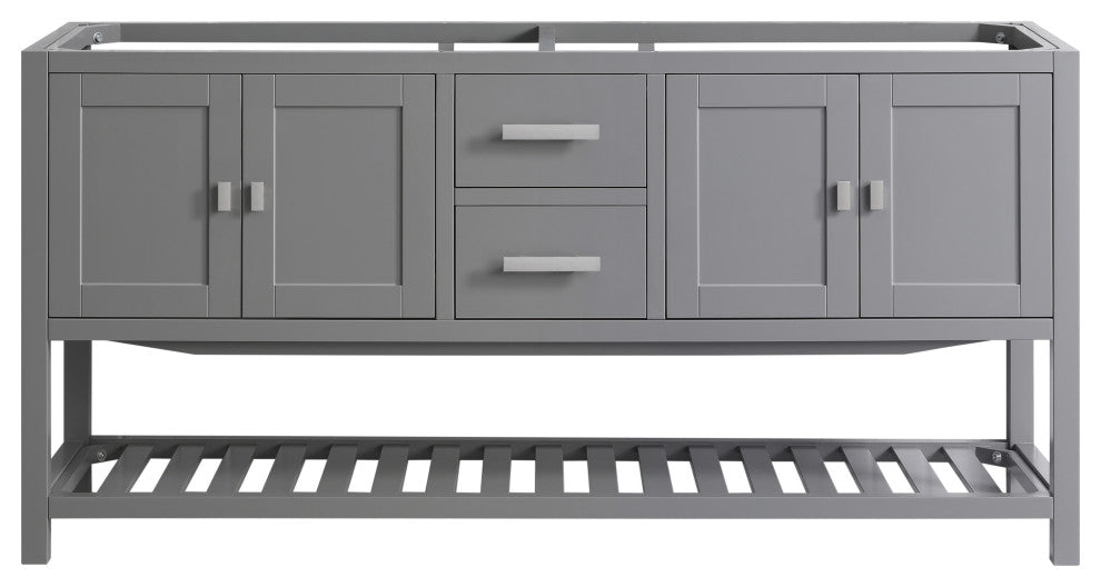Monaco Bathroom Vanity Base Cabinet Without Top, Gray, 72", Double Sink