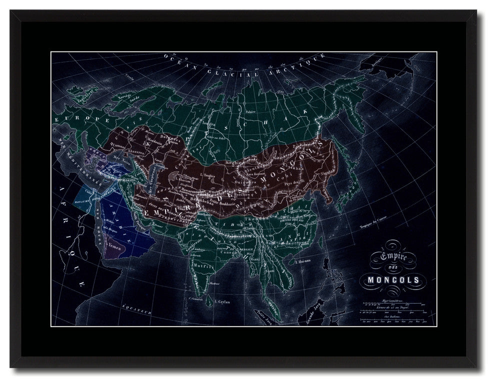Mongolian Empire Asia Vintage Vivid Color Map Canvas, 28"x37"