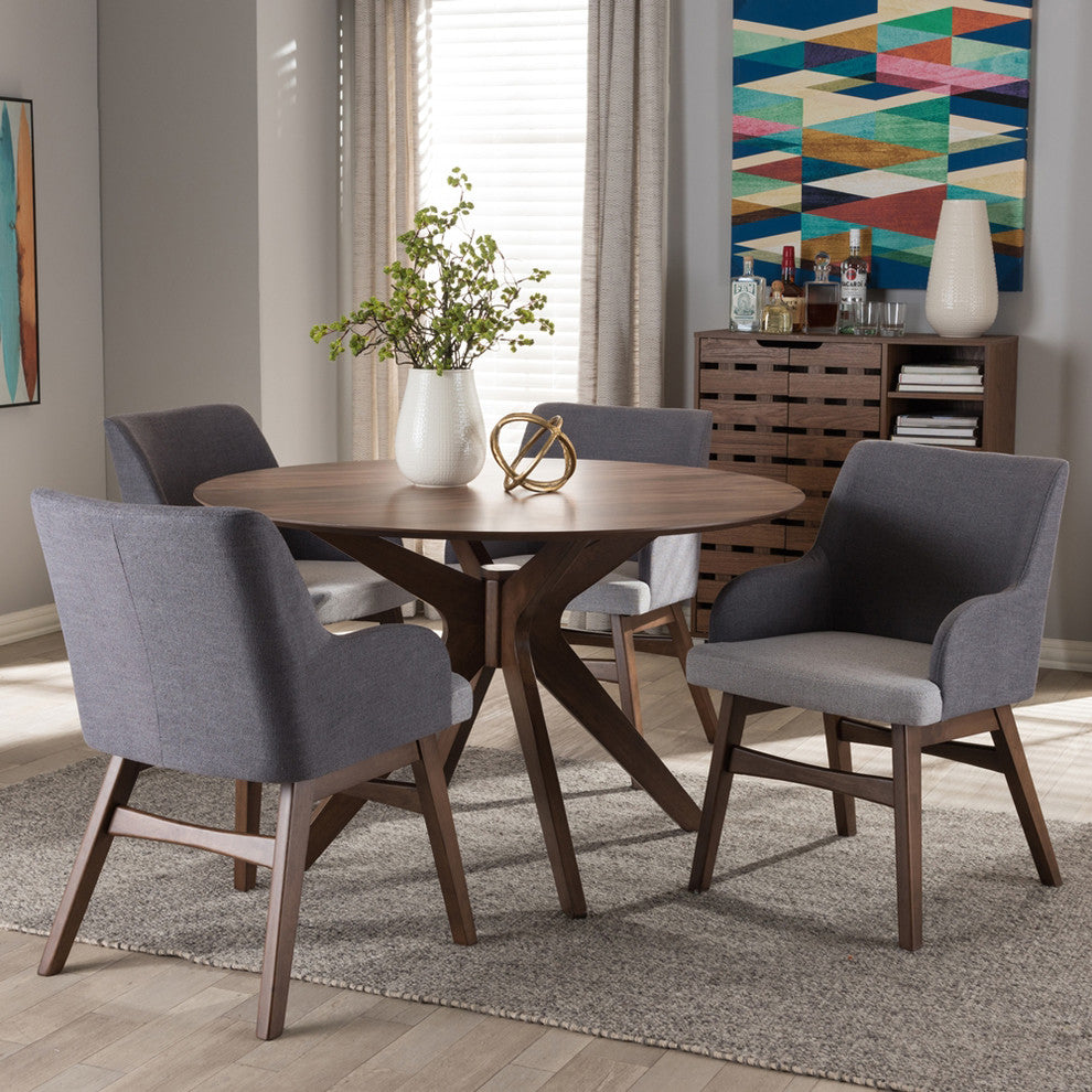 Monte Mid-Century Walnut Wood Round 5-Piece Dining Set