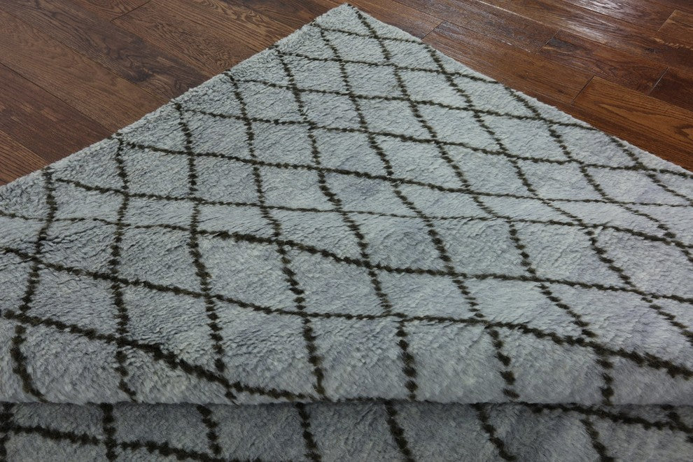 Moroccan Diamond Design 6'x9' Blue Hand Knotted Oriental Wool Area Rug