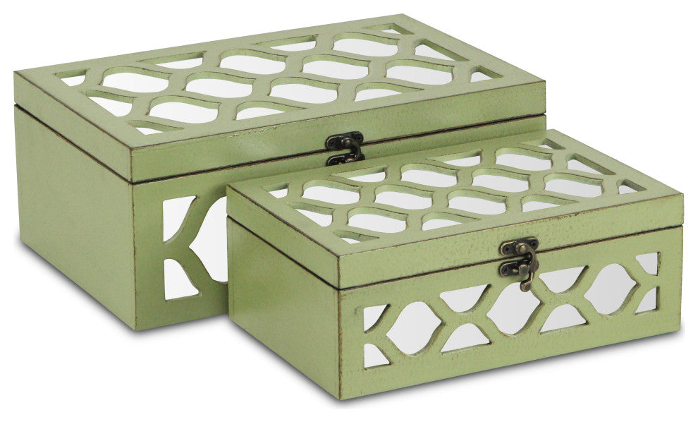 Moroccan Mirrored Wooden Boxes, Blue, Set of 2, Green