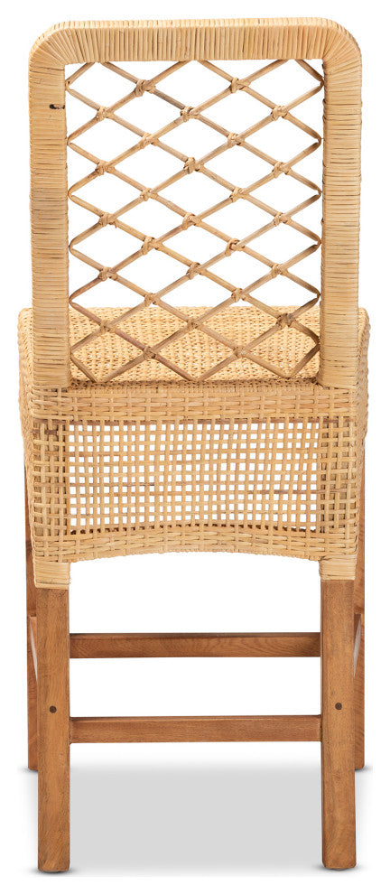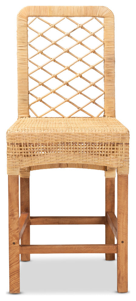 Moscow Bohemian Natural Brown Rattan and Walnut Brown Finish Wood Counter Stool