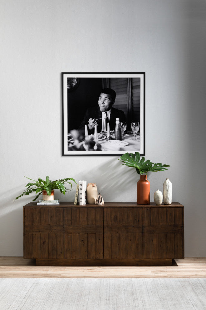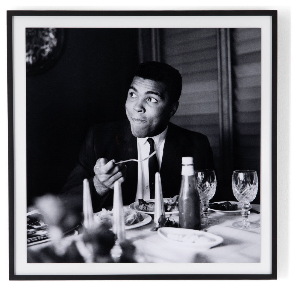 World heavyweight boxing champion Muhammed Ali, photographed in 1965 by Terry Fincher. Courtesy of Getty Images. Float-mounted and framed within black-finished American maple for a museum-quality look. Handmade in Austin, Texas, each print includes a certificate of authenticity commemorating the exclusive partnership between Getty Images and Four Hands Art Studio.