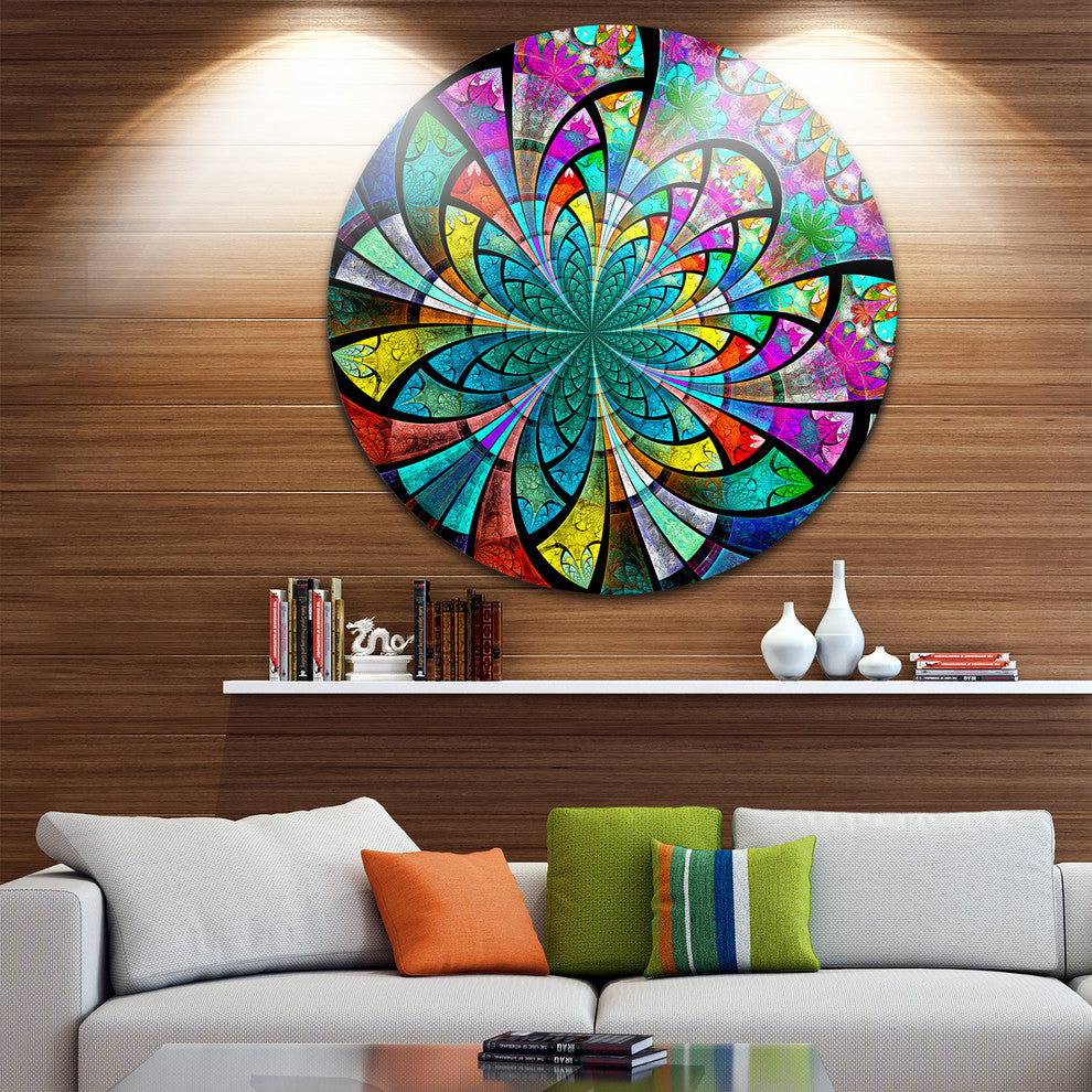 Bring Contemporary Abstraction to your home with this large Circle Metal wall art. This Multi Color Large Fractal Flower Pattern Metal Artwork makes it the focal point of any room or office.