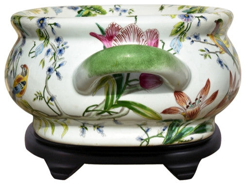 Multi Color Porcelain Foot Bath Basin Chinese Floral Bird Motif With Stand