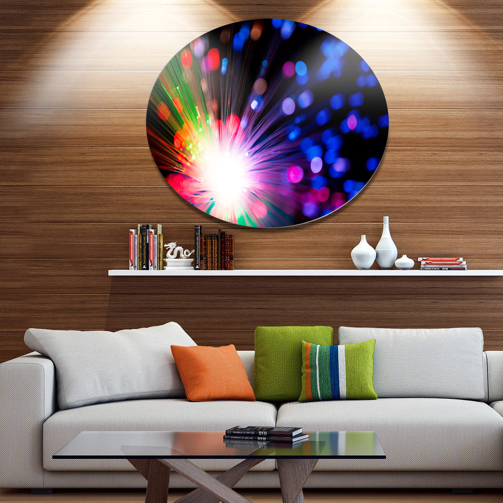 Multicolor Optical Fiber Lighting, Abstract Round Wall Art, 23"