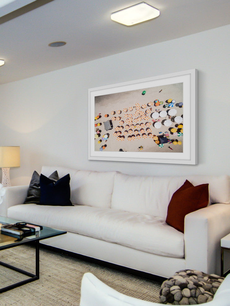 "Multicolored Umbrellas" Framed Painting Print features vivid tones and supple artistry. Mounted in a gorgeous frame, this 36 inch wide by 24 inch tall piece will be an exceptional addition to any room. Top quality Giclee print on high resolution Archive Paper Professionally framed and mounted on acid free archive matte High quality durable non-warping frame Arrives ready to hang Includes a certificate of authenticity Made in the USA
