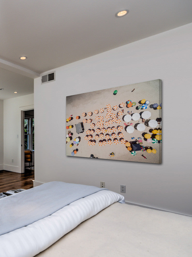 "Multicolored Umbrellas" Painting Print on Canvas features vivid tones and supple artistry. Printed on canvas, this 18 inch wide by 12 inch tall piece will be an exceptional addition to any room. Fine art canvas print from the Marmont Hill Art Collective Professionally hand stretched Gallery wrapped in sustainable, non-warping wood Arrives ready to hang Made in the USA Includes a certificate of authenticity