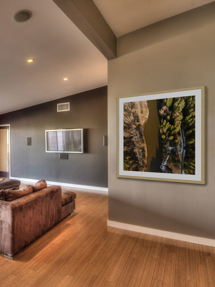 "Murky Waterway" Framed Print by Karolis Janulis features vivid tones and supple artistry. Mounted in a gorgeous frame, this 18 inch wide by 18 inch tall piece will be an exceptional addition to any room. Top quality Giclee print on high resolution Archive Paper Artwork by Karolis Janulis Professionally framed and mounted on acid free archive matte High quality durable non-warping frame Arrives ready to hang Includes a certificate of authenticity Made in the USA