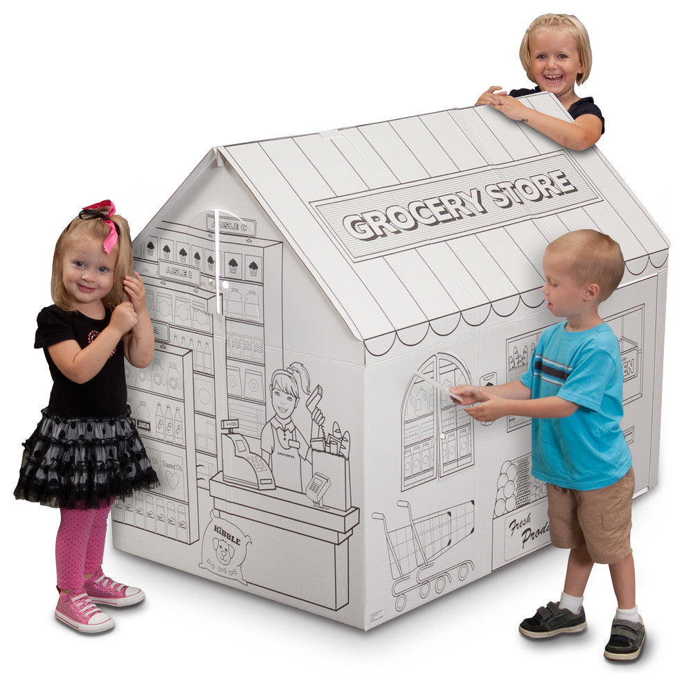 My Very Own Grocery TMHungry for fun? Ready to shop? Open the doors and step into My Very Own Grocery, the store thats all yours! Buy, sell, and stock the shelves! Color the awning, paint the walls, check out customers, set your own prices, make a home delivery, or feed the whole neighborhood. Make your grocery list, check it twice, and get everything you for a quick snack or a week of meals. This cardboard playset unfolds in minutes for hours of fun as clerks, cashiers, and customers! US Patent No. 7,552,563