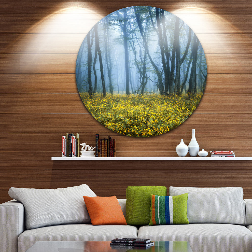 Bring Contemporary Abstraction to your home with this large Circle Metal wall art. This Mysterious Forest Fog Everywhere Metal Artwork makes it the focal point of any room or office.