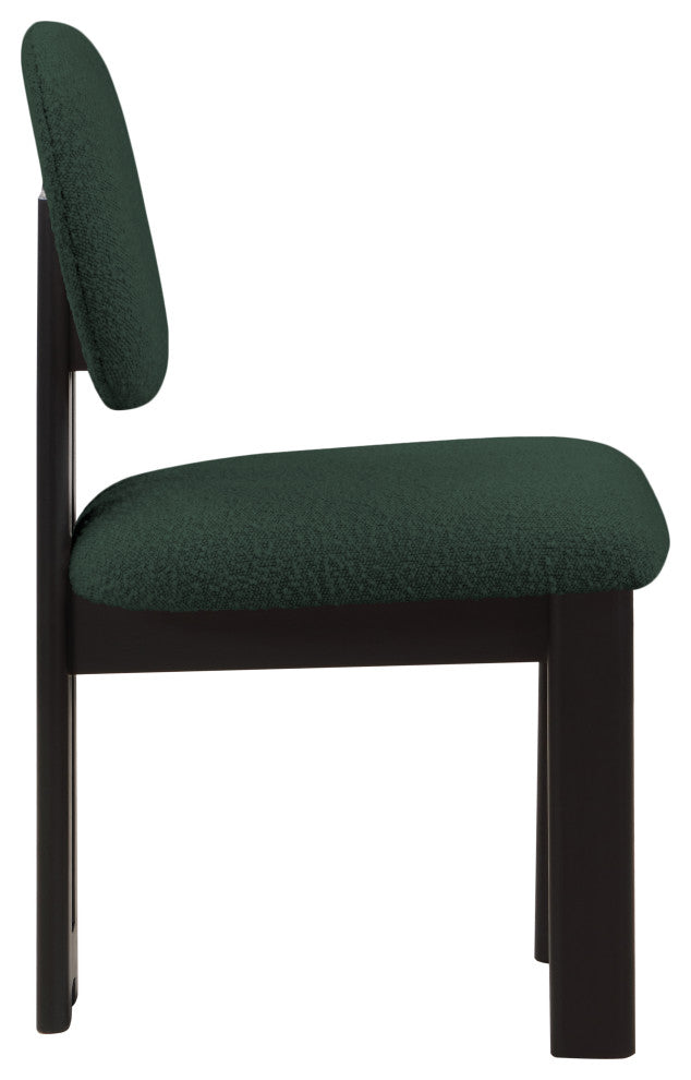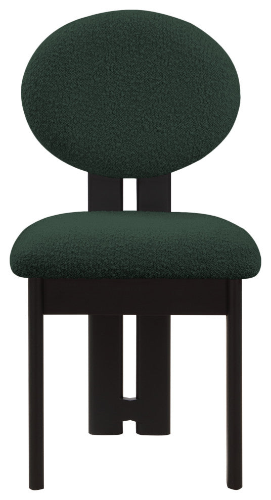 Elevate the look of your dining room with this Napa boucle fabric dining chair. This lovely chair features rich green boucle fabric upholstery on the seat and back, so guests feel super comfortable from the minute they sit down and throughout the whole meal. Rubberwood and other wood products make up the frame''s construction, giving the chair a sturdy countenance to withstand long-term use in your busy dining room or eat-in kitchen area.Overall Product Dimensions: 17.5" W x 20.75" D x 35.75" HRich Green Boucle FabricBlack Finish Solid Wood FrameContemporary DesignSeat Dimensions: Seat Width: 17.5"Seat Height: 18.5"Seat Depth: 20.75"Back Height: 17.75"