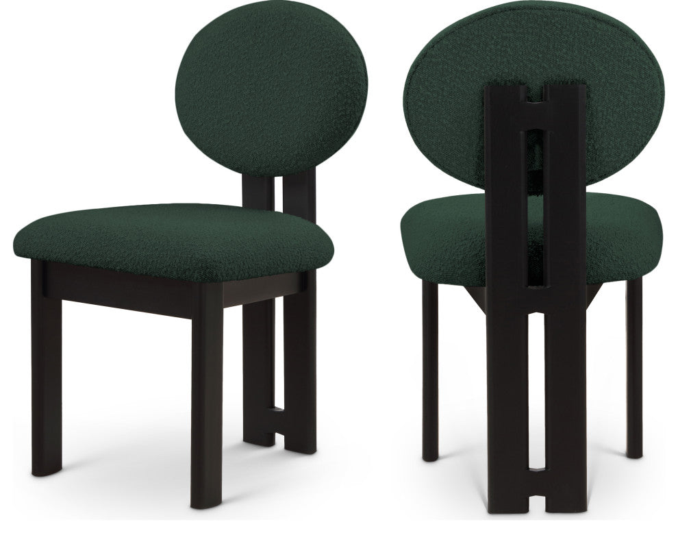 Napa Boucle Fabric Dining Chair, Set of 2, Green, Black Finish