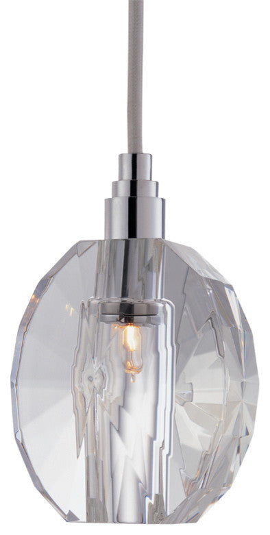 The modern edge of Italian design glints across the Naples collection. We''ve sculpted five uniquely beautiful shades, allowing you to express your own personal style. Be it a frozen tableau of effervescent bubbles or a prismatic spectrum of refracted light, each stunning piece displays lively passion. Vintage cloth cords accessorize Naples, while keeping attention on the pristine crystal and glasswork.Socket Ring Shade AttachmentUL ListedFinish: Polished Chrome, ClearOverall Dimensions: 4"Dia. x 5.5"HShade Dimensions: (1.25" top x 4" bottom)"Widths x 4"HCanopy Dimensions: 5.5"Diameter Lamping Info: Requires one (1) 20-watt Xenon G9 base bulb (included). Voltage: 120Lighting fixture is rated for Damp Location