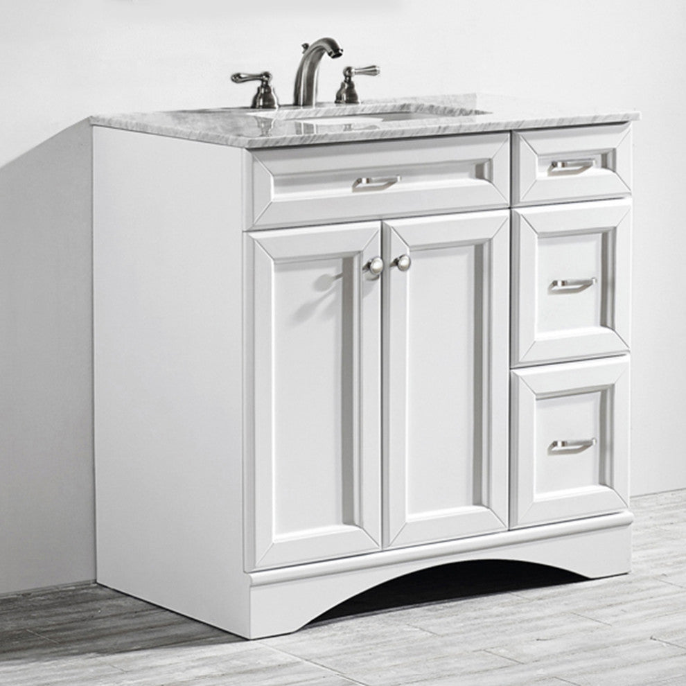 Naples 36" Vanity in White with Carrara White Marble Countertop Without Mirror