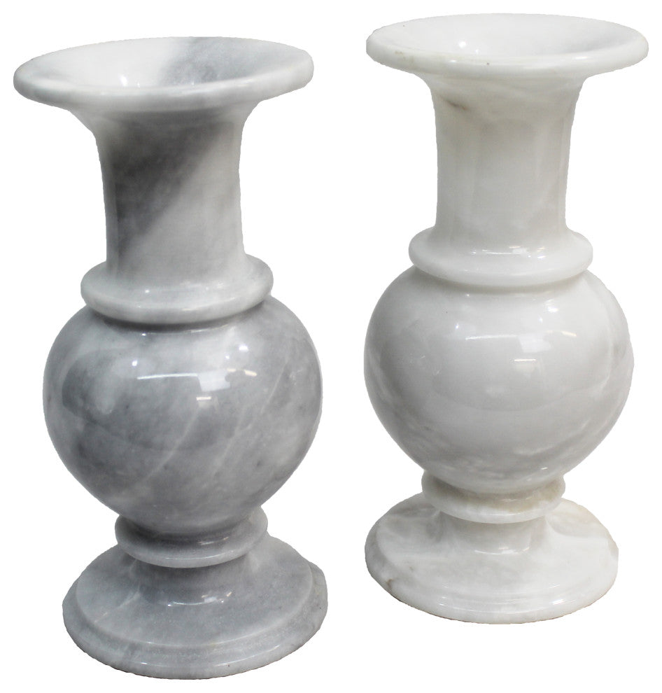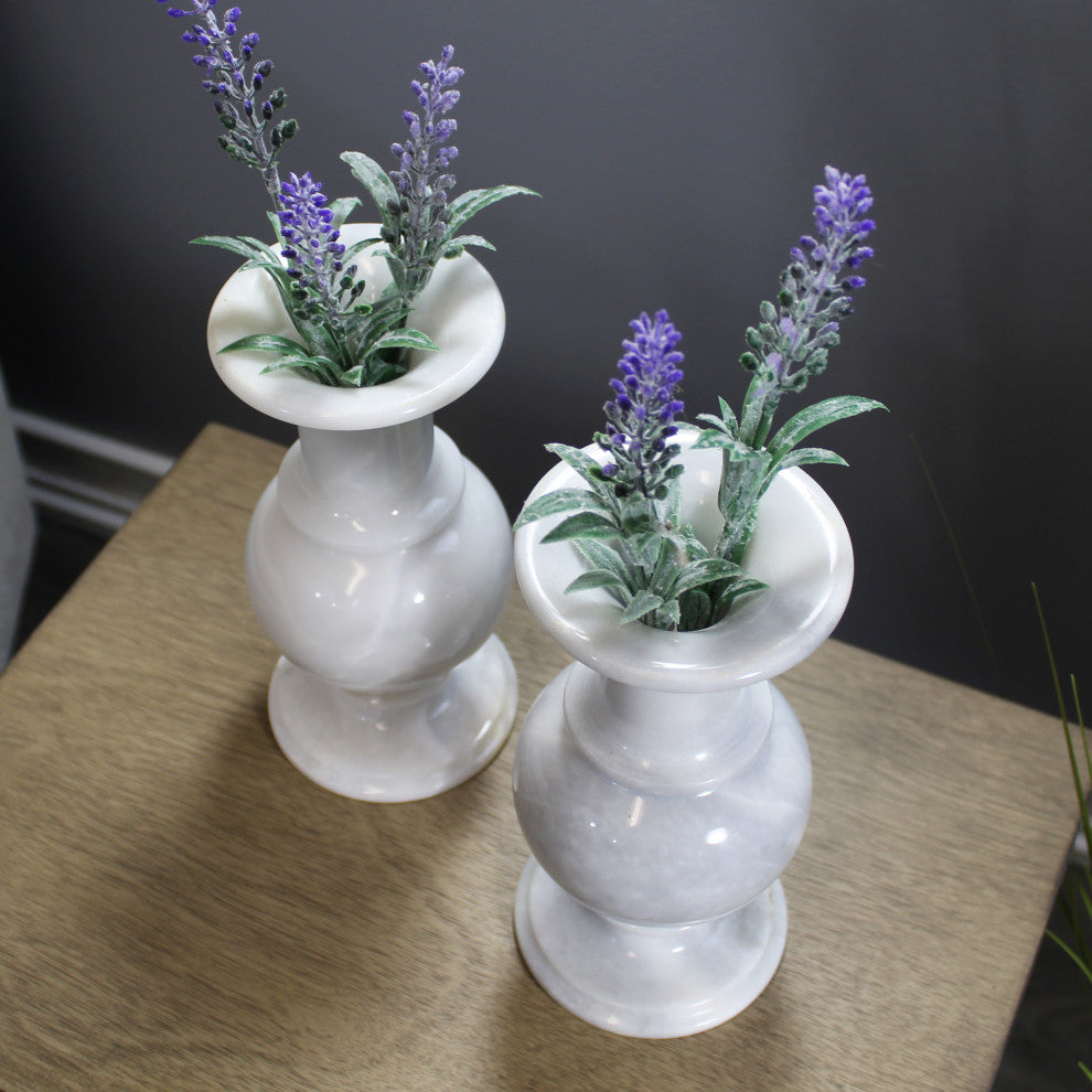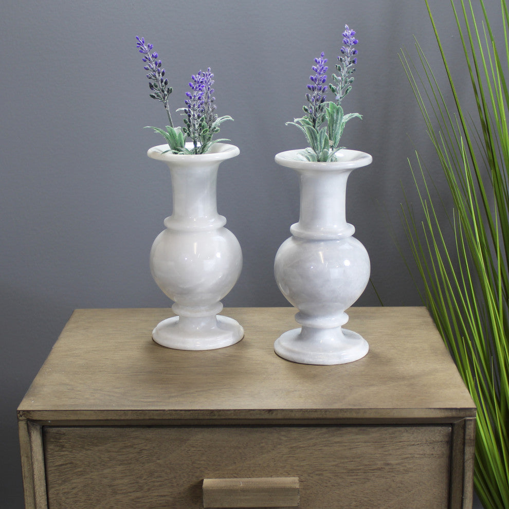 Natural Geo Marble Decorative 8" White Marble Vase Set of 2